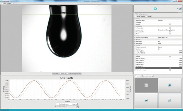 图3:OneAttension软件实时分析振荡液滴的体积实验